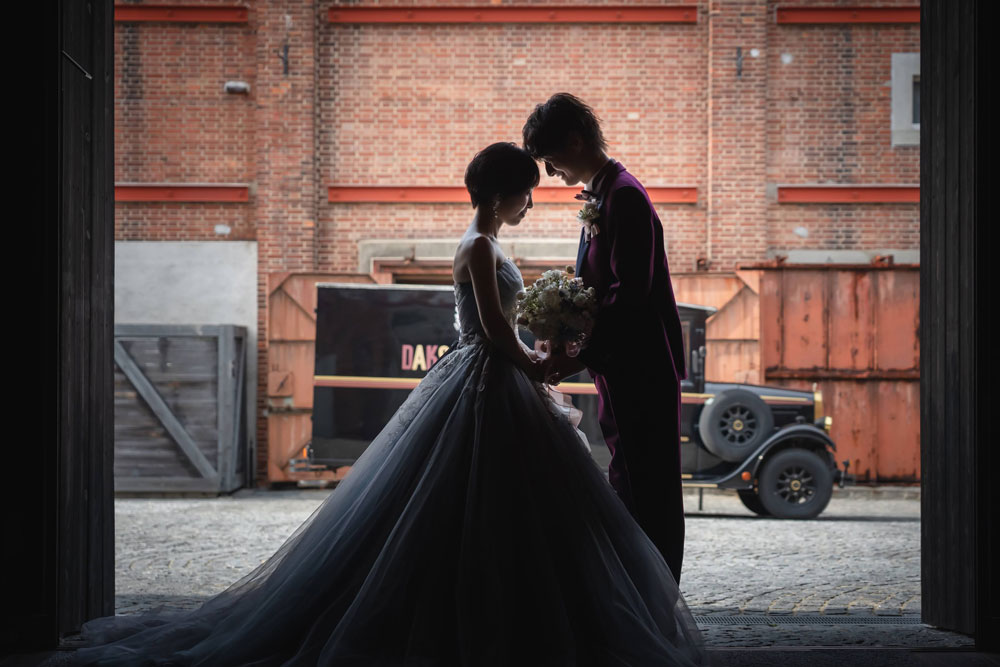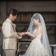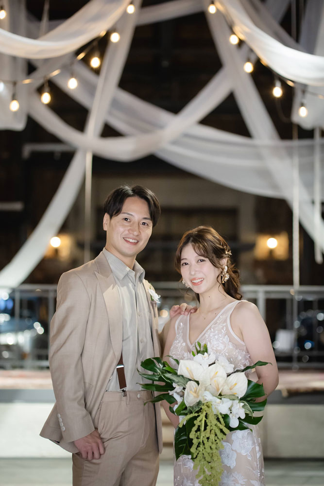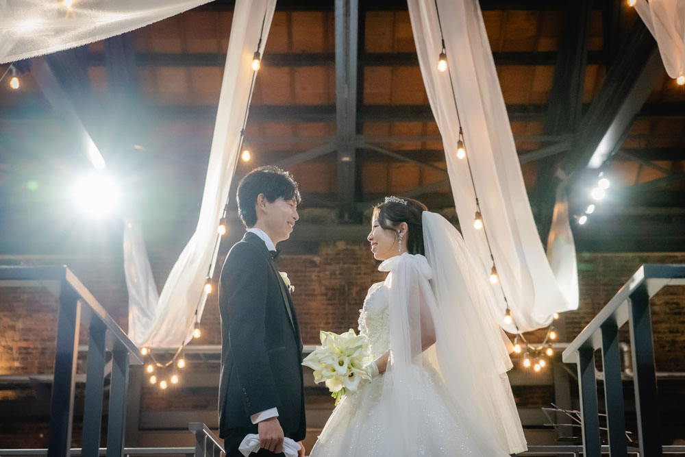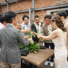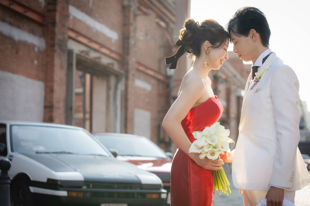 お色直し後のおふたりのお衣裳もアカレンガの雰囲気にバッチリ合っていてとってもオシャレ!
