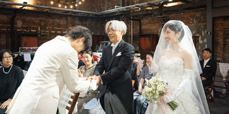 その中でも新婦様ご入場シーンにて、新婦お父様から新郎様へバトンタッチされるシーンは