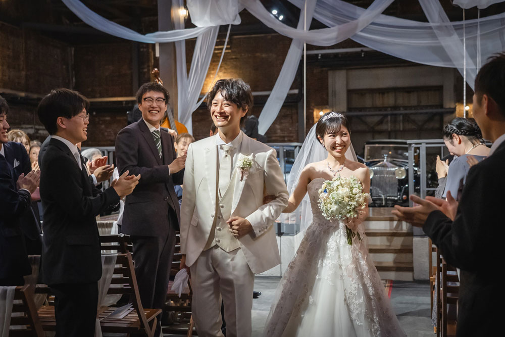 皆様の温かい祝福の拍手に包まれながらおふたりの挙式が結ばれました♡
