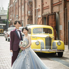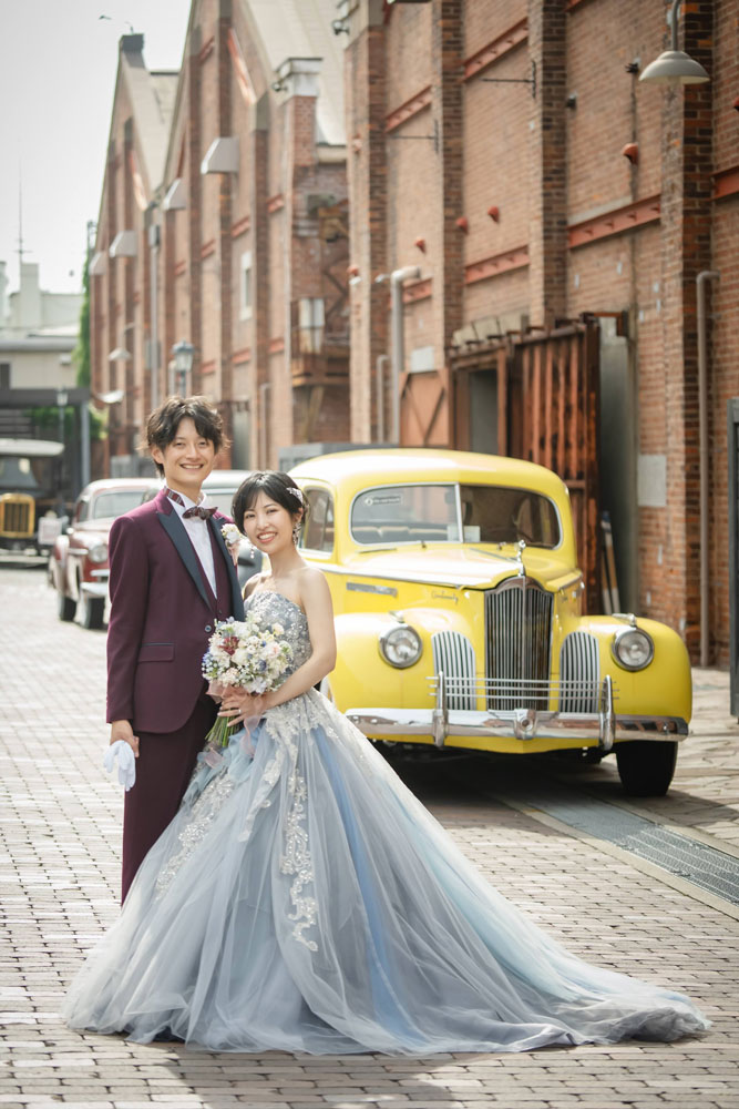 レトロで素敵なお衣裳が赤レンガやクラシックカーとの撮影相性抜群でした♡