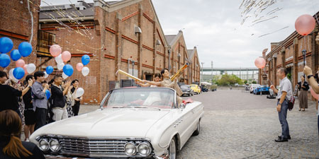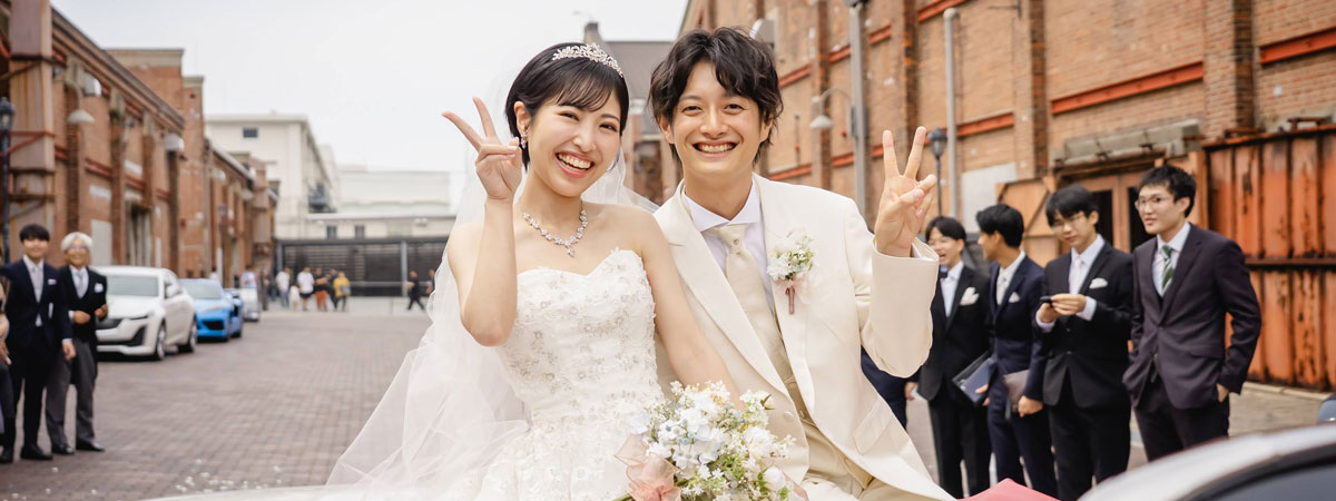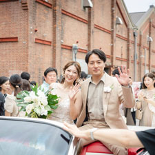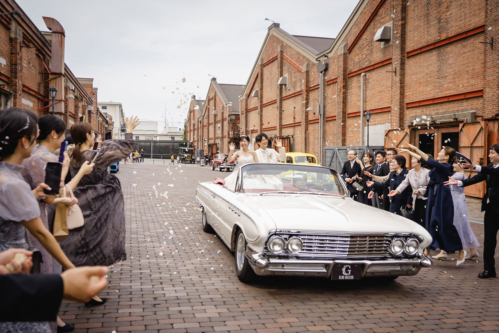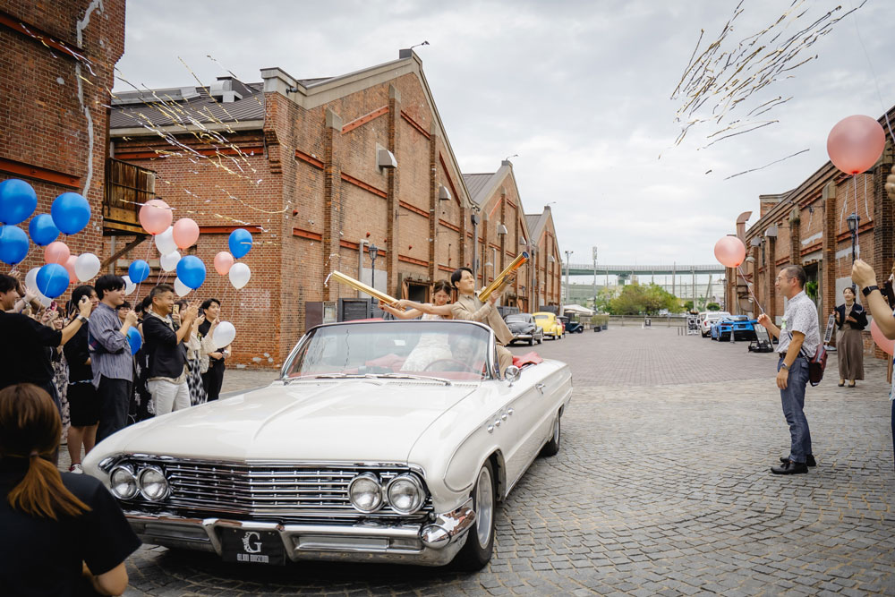 挙式後のセレモニーでクラシックカーに乗ってご入場した際は