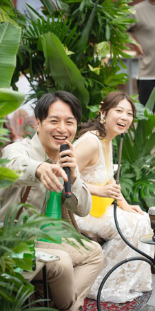 ご歓談タイムではリゾートカジュアルをテーマにした高砂エリアの装飾が