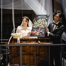愛車を展示したウェルカムカーからはじまり、披露宴ではサプライズでバイクに乗ってご入場!