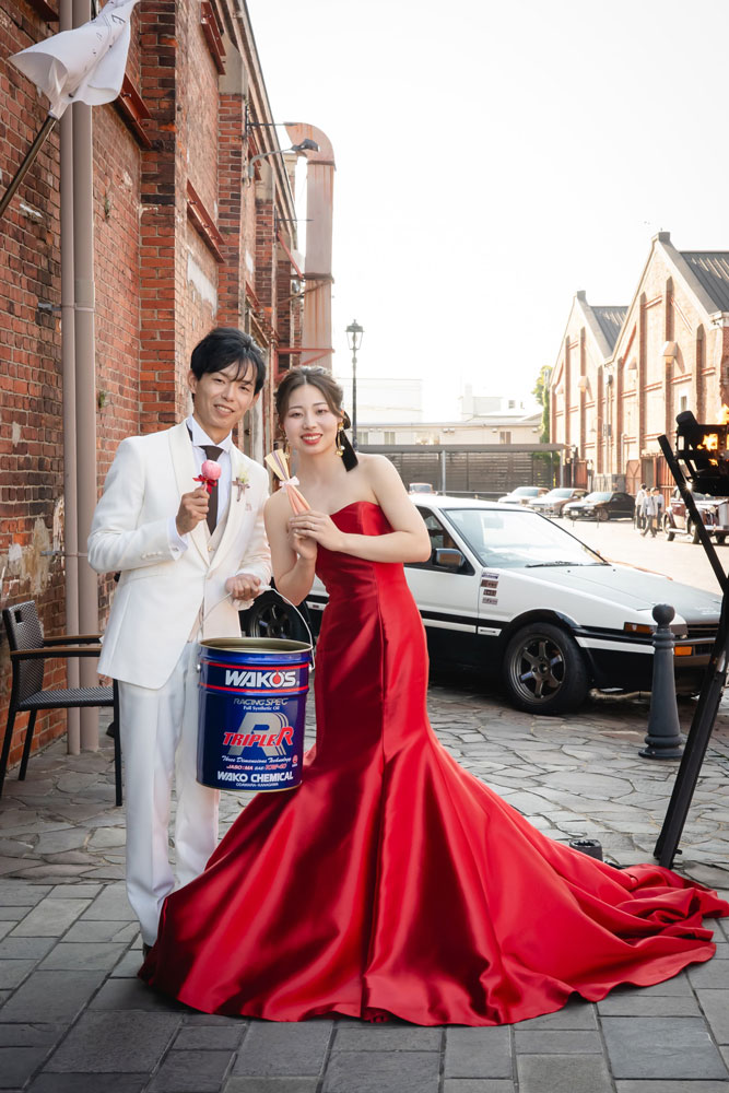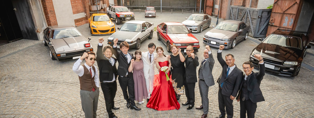 お披楽喜後のスナップ撮影ではおふたりの愛車も一緒に撮影を♬