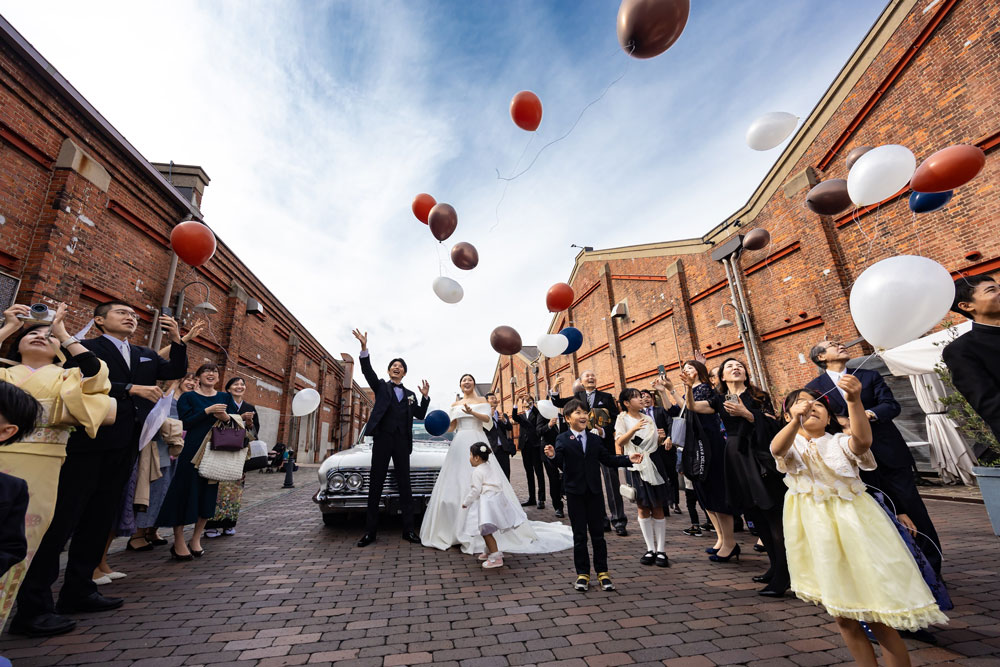 アフターセレモニーではオータムカラーのバルーンリリースを!