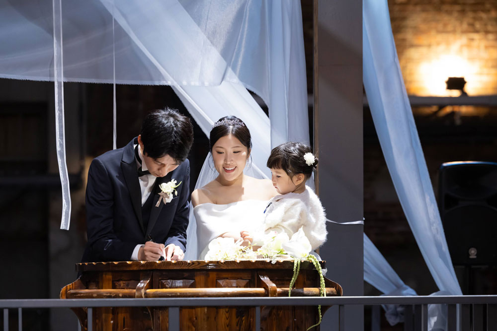 お子様と共に歩む温かな挙式と、一体感あふれる披露宴、