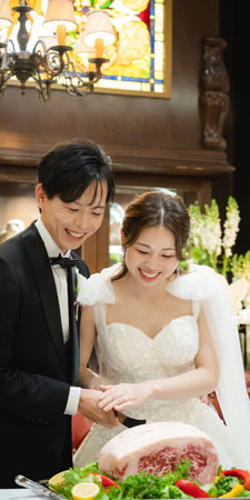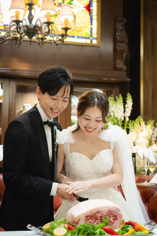 披露宴ではステーキハウスならではのお肉入刀演出!