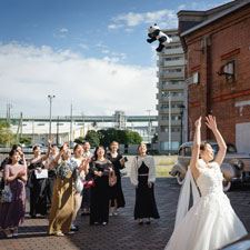 愛車を展示したウェルカムカーからはじまり、披露宴ではサプライズでバイクに乗ってご入場!