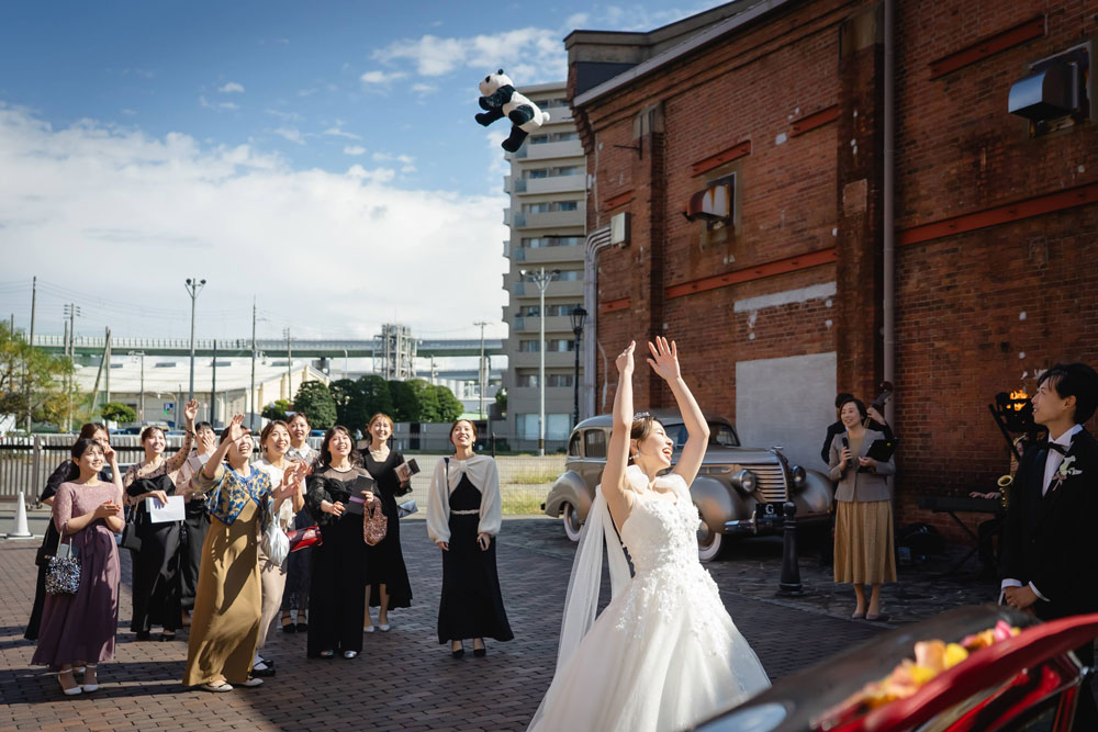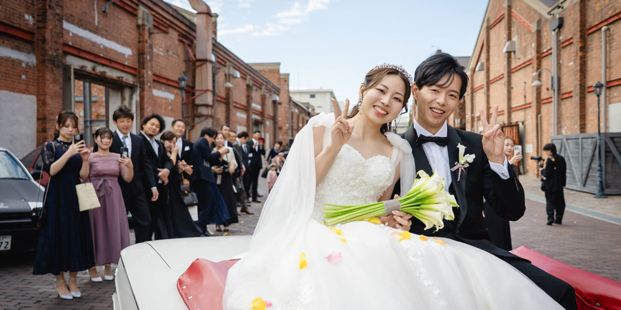 挙式後のセレモニーでクラシックカーに乗ってご入場した際は