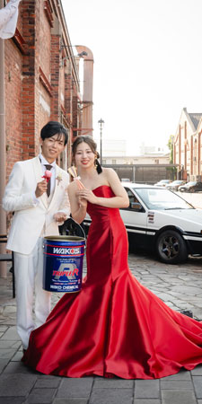 お披楽喜後のスナップ撮影ではおふたりの愛車も一緒に撮影を♬