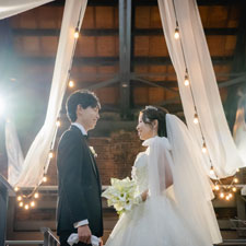 お色直し後のおふたりのお衣裳もアカレンガの雰囲気にバッチリ合っていてとってもオシャレ!