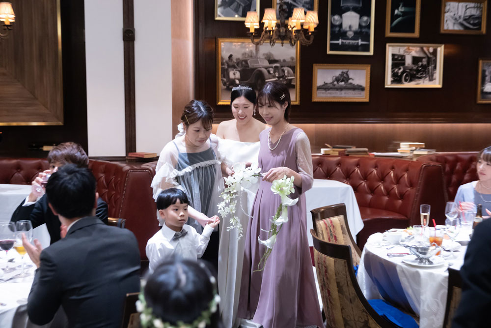 披露宴後半のお色直し入場では皆様にお菓子を配りながらゲストテーブルをラウンド♬
